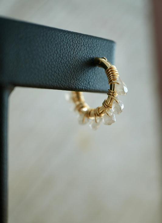 Gold Starlight Herkimer Diamond Hoop Earrings || 14K Gold Filled Herkimer Diamond Huggers || Bridal Earrings || Bridesmaid Hoops