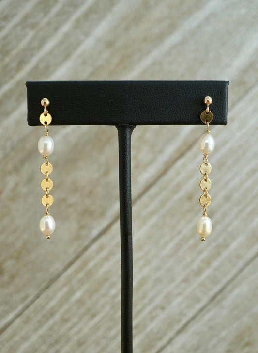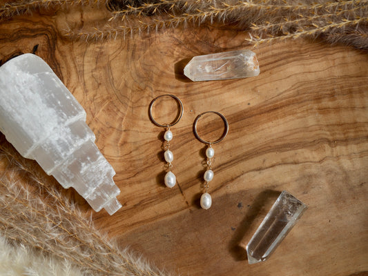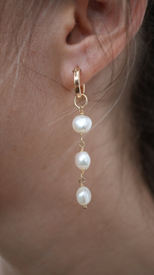 Serenity Tier Pearl Dangling Freshwater Pearl Earrings || 14K Gold Filled Pearl Earrings || Pearl Hoops || Pearl Earrings || Bridal Jewelry