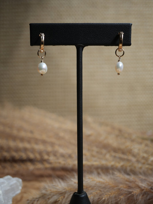 Dangling Freshwater Pearl Earrings || 14K Gold Filled Pearl Earrings || Pearl Hoops || Bridal Earrings || Bridal Jewelry || Wire Wrapped