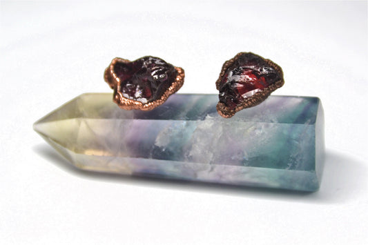 Raw Red Garnet Copper Studs | Mineral Earrings | Crystal Studs | January Earrings