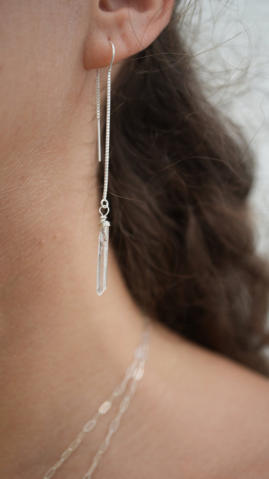 Rough Quartz Threaders | Dainty Ear Thread Earrings | Clear Quartz Earrings Silver, Festival Jewelry | Everyday Raw Quartz Threaders