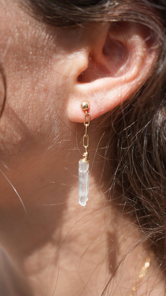 Gold Quartz Dangle Earrings || Studs || Clear Quartz Earrings || Gift For Her
