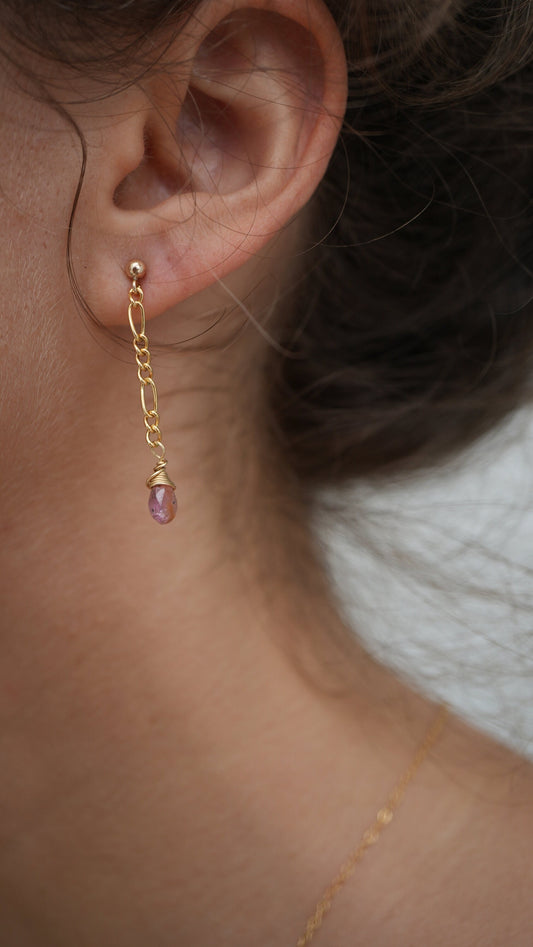 Pink Tourmaline Figaro Chain Earrings || 14K Gold Filled || Wire Wrapped Earrings