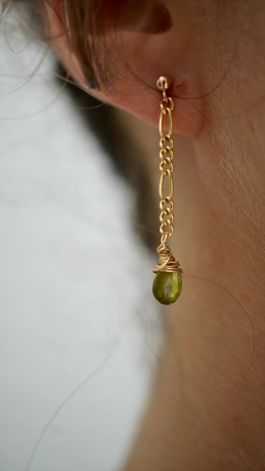 Green Tourmaline Figaro Chain Earrings || 14K Gold Filled