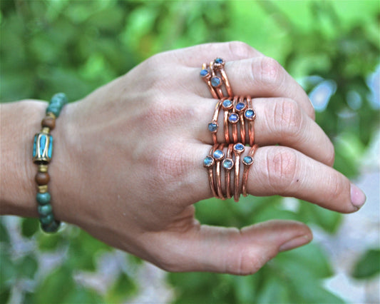 Raw Rainbow Moonstone Copper Ring | June Birthstone