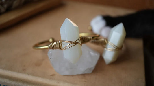 Gold Moonstone Cuff Bracelet 14K Gold Filled || Adjustable Double Point Crystal Bracelet || Crystal Cuff || June Birthstone || Brass Cuff
