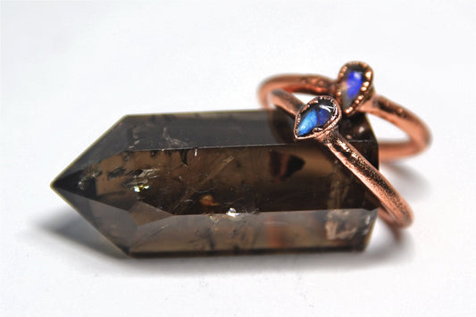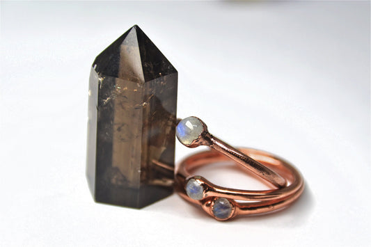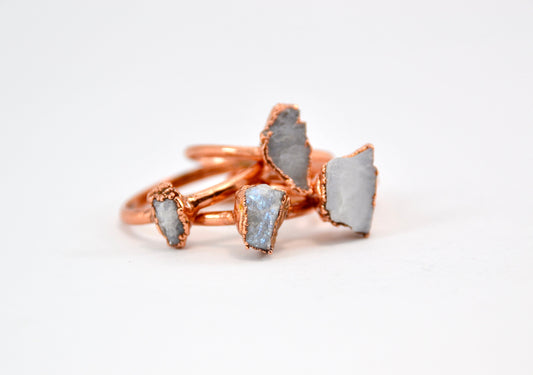 Raw Rainbow Moonstone Copper Ring | June Birthstone