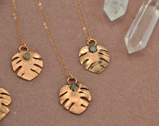 Monstera Leaf Necklace || Handmade Monstera Necklace || Copper & 14K Rose Gold Filled