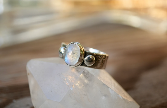 Gold Rainbow Moonstone Ring || June Birthstone Ring