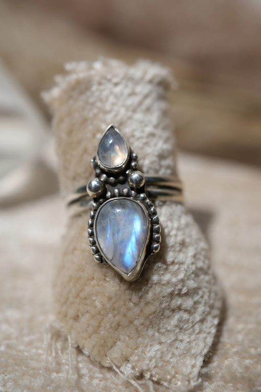 Sterling Silver Moonstone Goddess Ring || Rainbow Moonstone Ring || Solid Sterling Silver