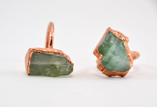 Raw Calcite Copper Ring | Mineral Stone Ring | Green Calcite Copper Ring