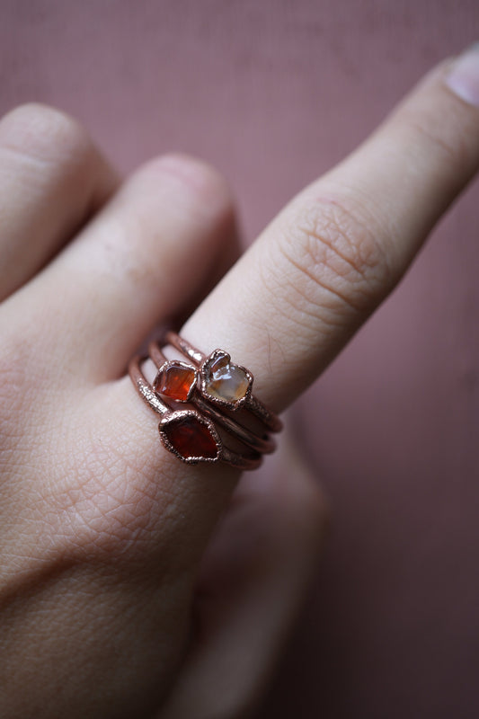Copper Carnelian Ring || Electroformed Carnelian Stone Ring || Stone Stacking Ring || Healing Crystal Jewelry || Copper Raw Stone Ring