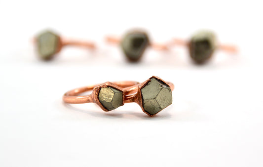 Raw Pyrite Copper Ring | Copper Pyrite Ring | Fools Gold Ring