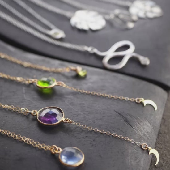 One of my all time Daddy Daughter Jewelry faves! A beautiful layering necklace handcrafted with a gorgeous natural amethyst stone and accented with a dainty crescent moon.